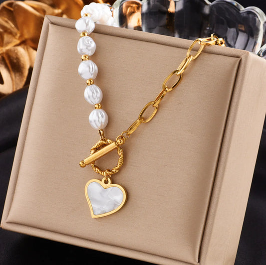 Collar de acero de titanio con costura de perlas: diseño de clavícula con hebilla OT en forma de corazón de melocotón